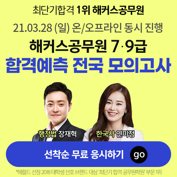 21년 3월 28일 (일) 10시! 해커스공무원 7/9급 전국 모의고사 실시! 시험 전 실전 감각을 익히고, 내 위치를 파악하여 시험에 대비하세요! (온라인 : 무료) (오프라인 : 5,000원 - 강남역/노량진캠퍼스)