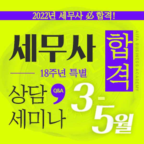 18주년 아이파경영아카데미, 2022년 시험대비 - 세무사 합격 상담 세미나 교육대상 1. 2022년 세무사 시험을 준비하고자 하는 분 2. 세무사 시험에 관심 있는 분 3. 세무사 수험계획 수립을 위한 맞춤