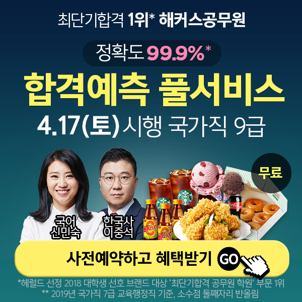 [해커스공무원] 정확도 99.9% 국가직 9급 합격예측 풀서비스