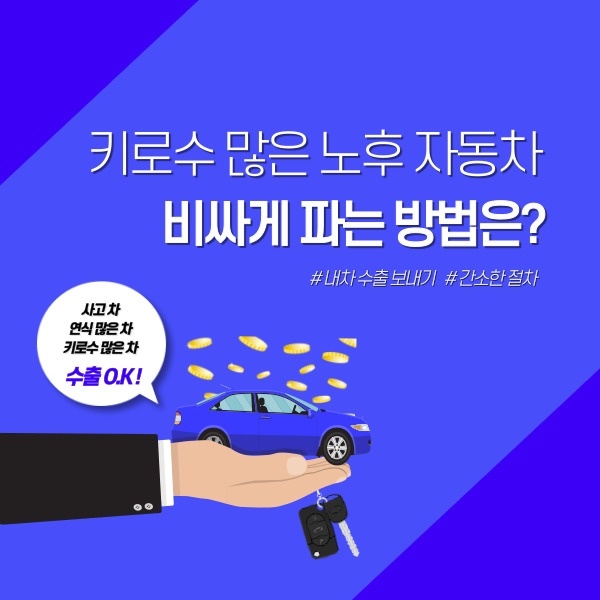 국내에서 판매하기 까다롭고 어려운 키로수 많은 차, 연식 많은 차, 사고차,