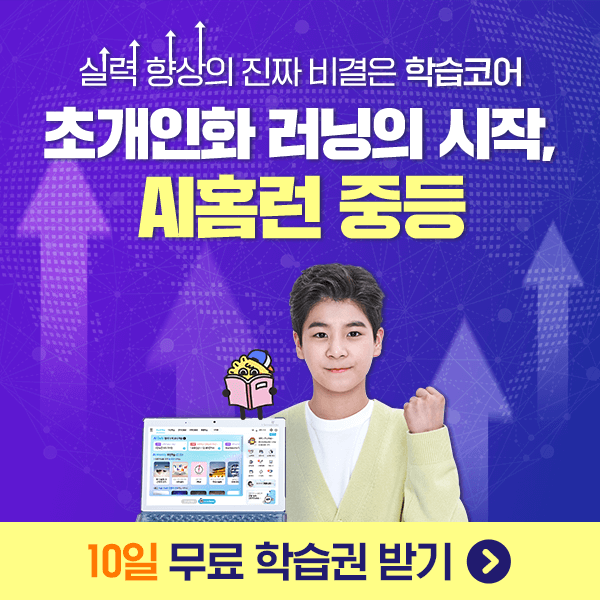 초개인화 러닝의 시작, 아이스크림 AI홈런! 중학 공부 실력 향상의 비결은 탄탄한 학습 코어에 있습니다 AI분석으로 나에게 딱 맞는 학습법부터 1:1 학습관리 시스템까지! 지금 신청하고 10일간 무