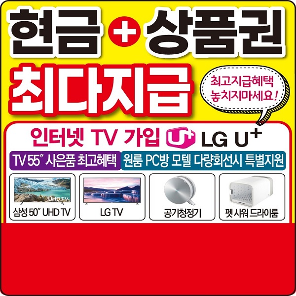 LG유플러스 인터넷&TV 전문가입센터 / 현금+사은품 최다지급