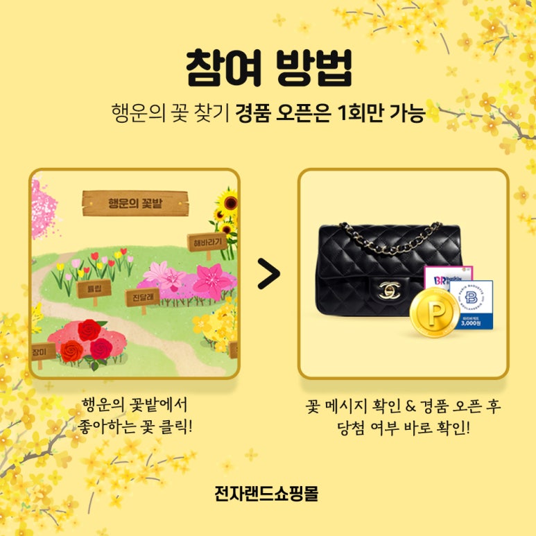 꽃놀이 이벤트 #행운의꽃_샤넬백, 행운 꽃밭에서 경품 오픈하면 사넬백이 내꺼!