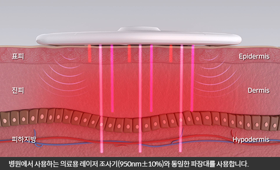 페인큐는 940nm의 근적외선으로 여러 피부층을 뚫고 신속히 도달