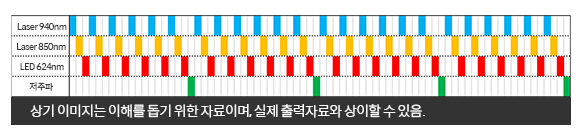 Laser + LED + 저주파의 동시 출력이 아닌 '펄스(교차)출력'구현.