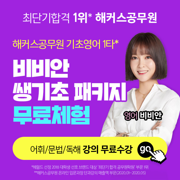 해커스공무원 기초영어 1타 비비안 선생님의 쌩기초 패키지를 무료로 체험 가능