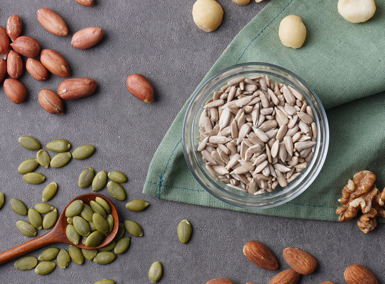 땅콩, 호두, 아몬드, 해바라기씨, 호박씨,
