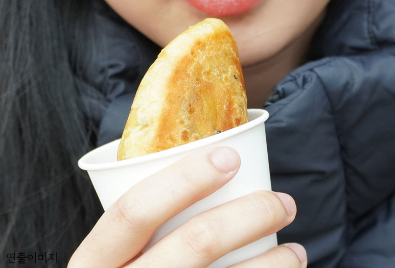 호떡 장수가 수제로 직접 만든 달콤하고 고소한 맛이랍니다.
