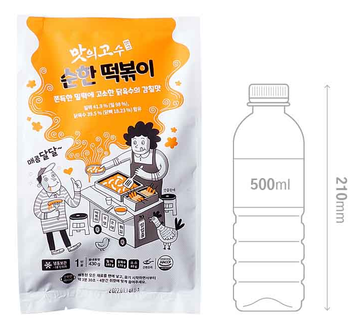 달콤한 떡볶이 소스와 국내산 닭으로 깨끗하게 만든 고소하고 진한 닭육수가 들어있어요.