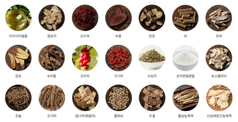 참당귀, 산수유, 녹용 뿐만 아니라 엄선된 다양한 전통원료 그대로 담았습니다.
