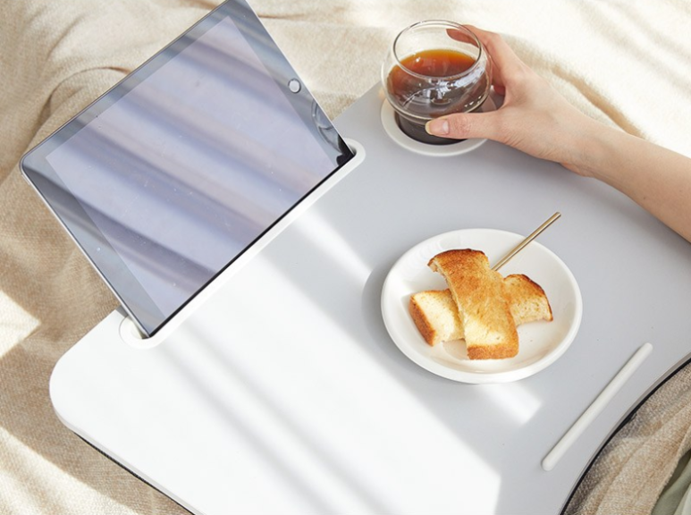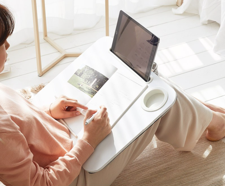 침대나 쇼파에 몸을 기대어 테이블이