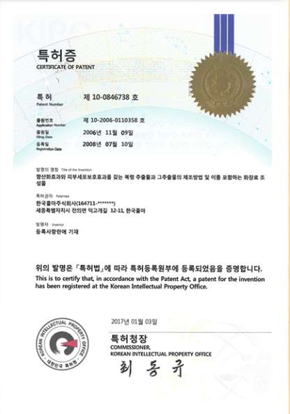 항산화효과와 피부세포 보호효과를 갖는