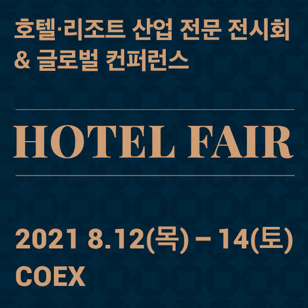 호텔·리조트 산업 전문 전시회 &글로벌 컨퍼런스 '호텔페어 2021' 8월 코엑스에서 개최됩니다. 호텔 개발/디자인/트렌드 글로벌 인사이트를 확인하세요. 사전등록하면 무료관람을 비롯해 다양한