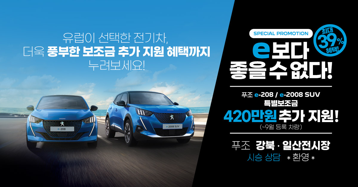 푸조 e-208 / e-2008 SUV 특별 구입 혜택