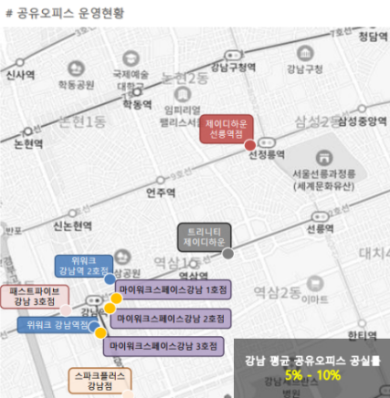 강남권 공유오피스 다수 운영, 공실률 10% 미만으로 선호도 높음