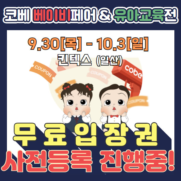 10월 킨텍스에서 만나는 [코베 베이비페어&유아교육전] - 무료입장권 사전등록 놓치지 마세요!!! 9.30(목) - 10.3(일), 킨텍스(일산) [모르면 너무너무 손해! 최대 90% 할인! 코베 이벤트] #코베는 #혜택