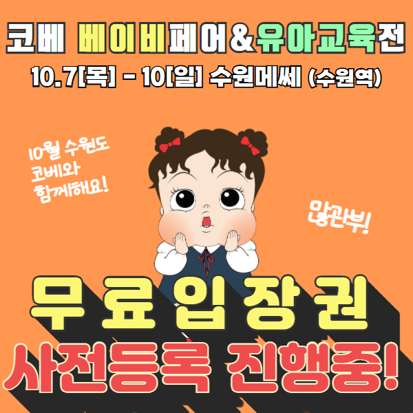 10월 수원메쎄에서 만나는 [코베 베이비페어&유아교육전] -무료입장권 사전등록 놓치지 마세요!!! 10.7(목) - 10(일), 수원메쎄(수원역) [모르면 너무너무 손해! 최대 90% 할인! 코베 이벤트] #코베는 #