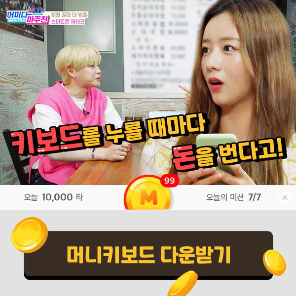 에이핑크 보미가 어쩌다 마주친 tv 프로그램에서 소개한 머니 키보드!!! 머니 키보드는 키보드만 사용해도 머니가 쌓이는 신개념 리워드 어플입니다! 이젠 매일 하는 카톡, sns 댓글, 유튜브 댓글