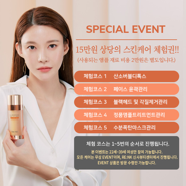 다시 살아나는 피부 Re:NK 스킨케어 체험해보세요.