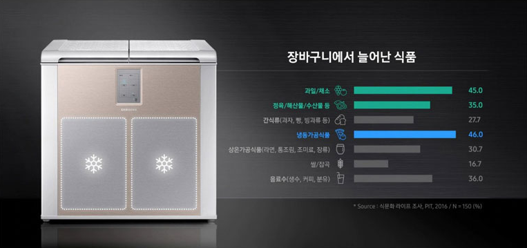 장바구니에서 냉동식품의 비중이 늘면서 냉장고의 냉동실로 부족함을 느끼는 고객이 많아졌습니다.
