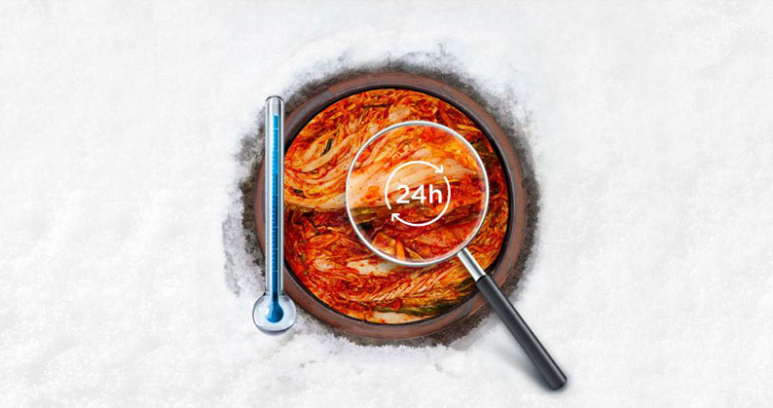 김치의 양과 온도를 24시간 감지하여 최적의 김치온도를 알아서 체크하고,