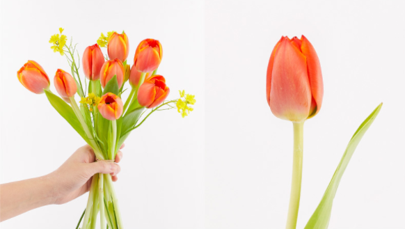 튤립은 물 높이를 낮게, 줄기를 직선으로 잘라
