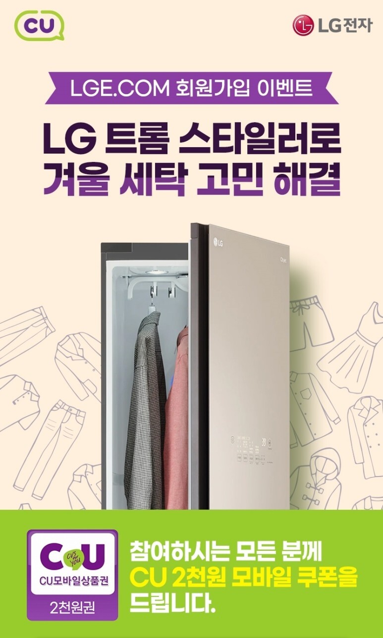 참여하신 고객 중 3분을 추첨해서 LG 스타일러도 제공합니다.