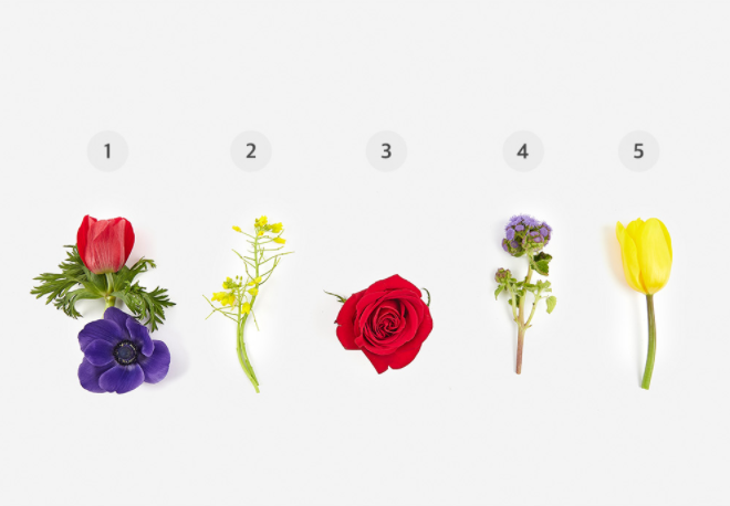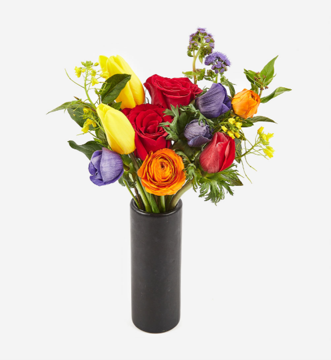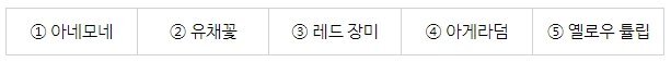 독특한 화형의 아네모네와 비비드한 색감의 꽃들을 가득 담아