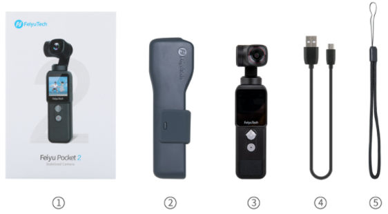 ①패킹박스 ②전용 파우치 ③본체 ④C타입USB케이블 ⑤스트랩
