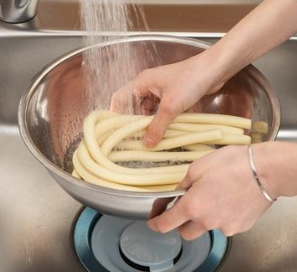 ①떡을 물에 한 번 씻어주세요.
