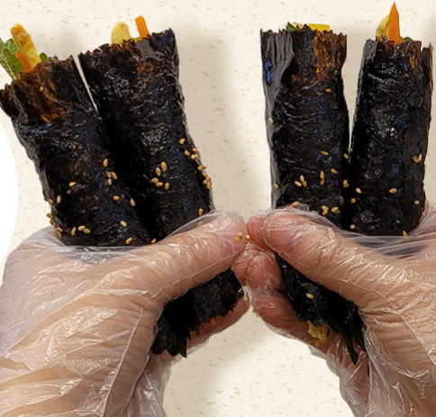 전 지점 얇고 바삭바삭한 전통 재래김을 사용합니다.