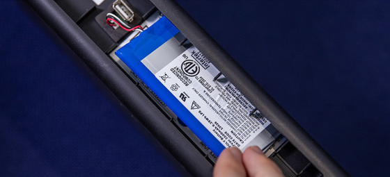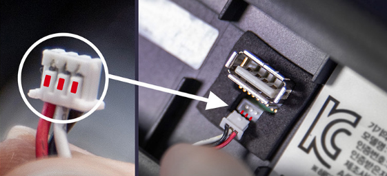 그리고 USB 포트 바로 아래 작은 커넥터에 배터리를 연결해 주세요.