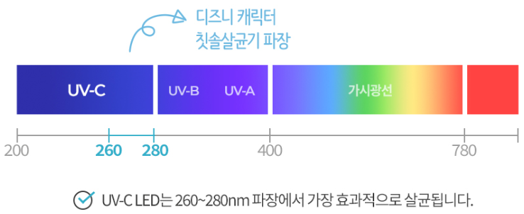 UV C LED는 연쇄상구균(뮤탄스균), 녹농균, 대장균, 황색포도상구균 등