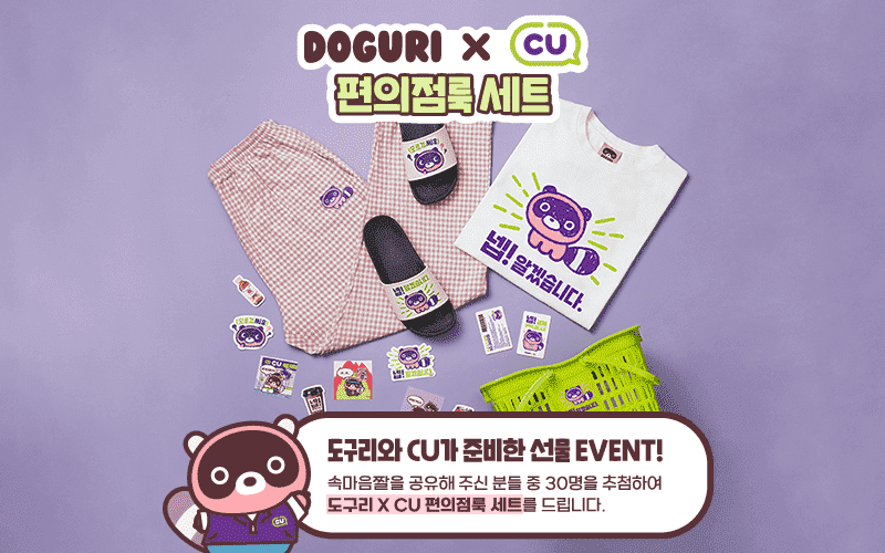 추첨을 통해 '도구리 X CU 편의점룩 세트'를 증정합니다.