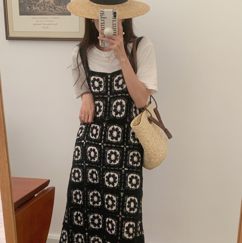 여성 피넨 플라워 펀칭 니트 롱원피스