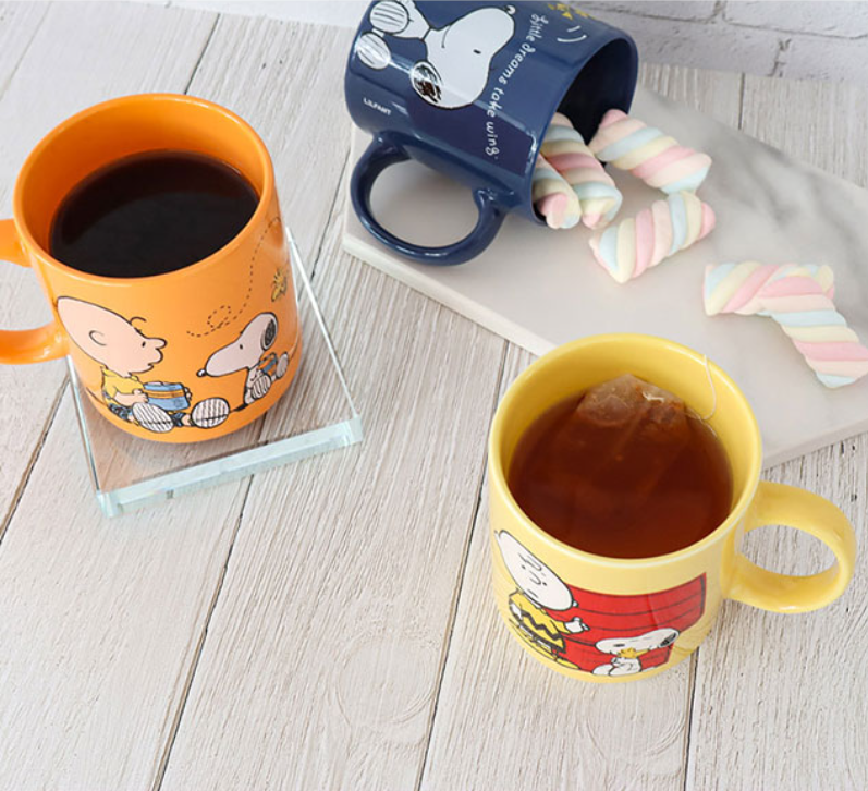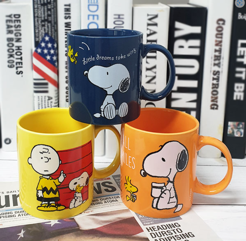 산뜻한 세 가지 컬러의 귀여운 스누피 도자기 머그컵입니다.
