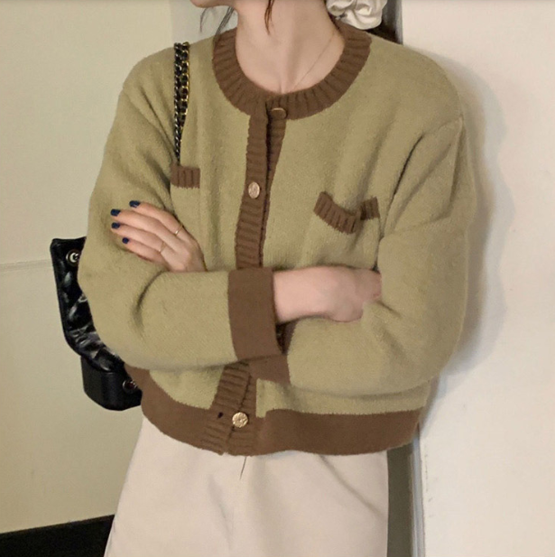 골드 배색 가디건