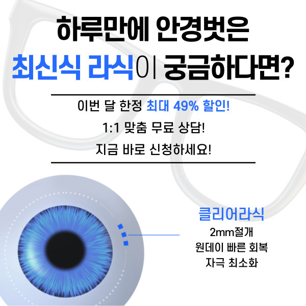 무료 상담 및 최대 할인! 4세대 스마일라식이란? - 2mm 절개 - 원데이 빠른 회복 - 자극 최소화