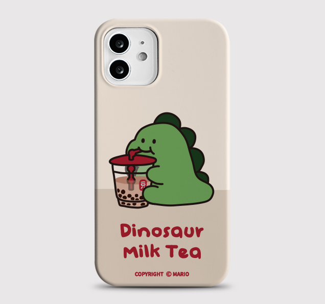 귀여운 공룡이 버블티를 먹는 그림이 그려진 하드케이스입니다.