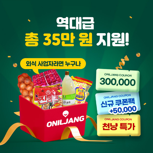 온일장에서 식자재 구매할 때마다, 매일매일 1만원 쿠폰 증정 (최대 30회)