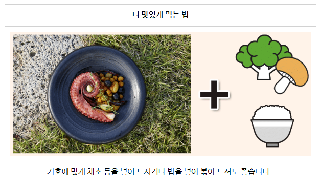 브로콜리와 병아리콩, 앙송이 버섯을 더해 더욱 풍성하게 구성했습니다.