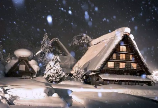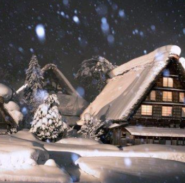 겨울이 올 때마다 밤에는 사람 모양의 목조 가옥 위에 새하얀 눈이 마치 동화처럼 잊을 수 없는