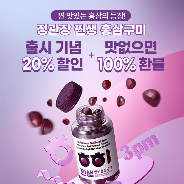 더 이상 맛없는 홍삼은 그만! 상큼한 포도맛 에너지 충전 찐-맛있는 홍삼의 등장 맛 없으면 100% 환불! 정관장 신제품 찐생홍삼구미 최대 28% 할인 고민은 배송만 늦출 뿐! #정관장 #찐생홍삼구미 #