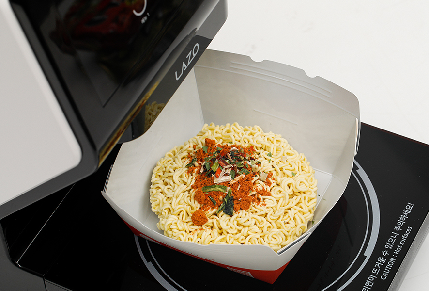다양한 공간에 쉽게 설치할 수 있는 "라조 즉석 라면조리기"입니다.