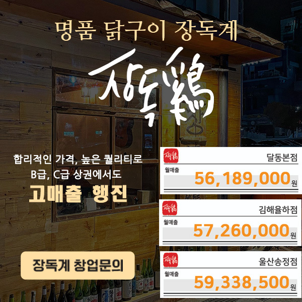 닭구이계의 에르메스 장독계 모든 상권 고매출 행진 창업문의하기!