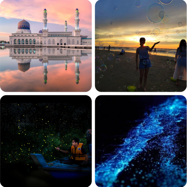 체크아웃 후 마지막 일정으로 아름다운 건축물 모스크부터 반짝이는 반딧불, 물 속에서 내 손이 휘젓는대로 뿌려지는 은하수 블루티어스(발광플라크톤)까지 모두 즐길 수 있는 투어가 포함되어 있습니다.