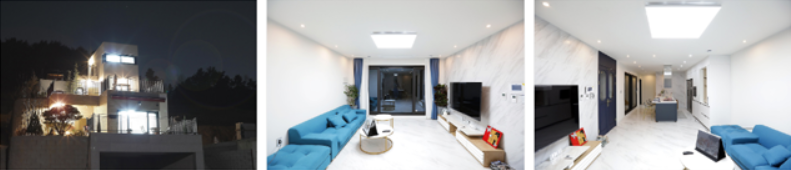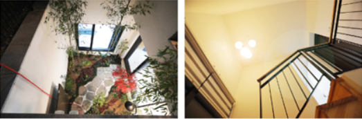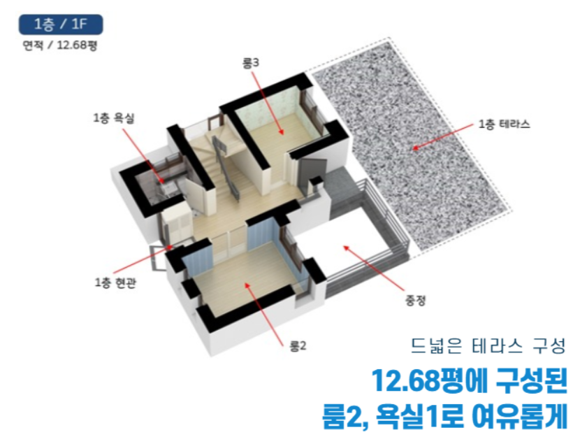 테라스 1층 잔디테라스, 2층 석재테라스, 3층 옥상테라스