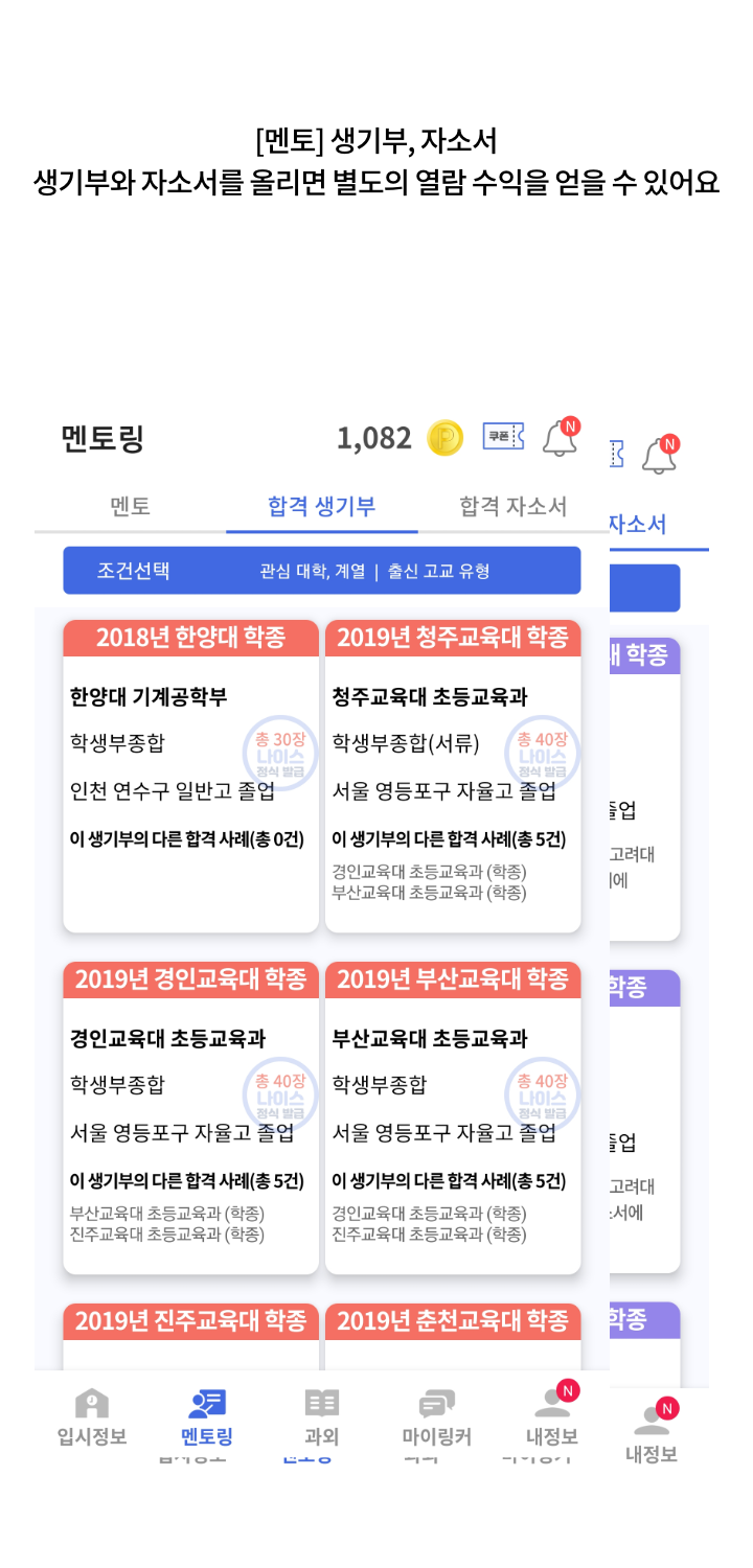 1,200여 개 합격 생기부와 자소서 열람(특허 출원)