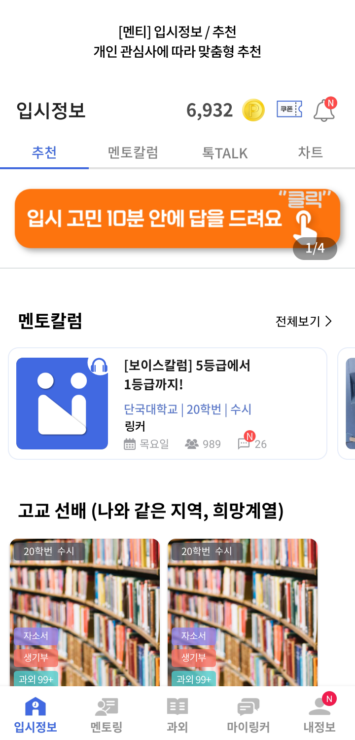 목표대학의 대학생과 직접 입시 멘토링이 필요한 수험생