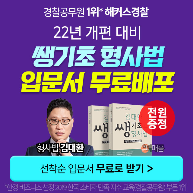 [해커스경찰] 김대환 쌩기초 형사법 입문서 무료배포